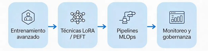 Diseñamos e implementamos Agentes de Inteligencia Artificial empresariales utilizando Azure OpenAI Service, arquitecturas RAG avanzadas con Azure AI Search, integración estandarizada de herramientas (MCP) y fine-tuning / custom models en Azure.