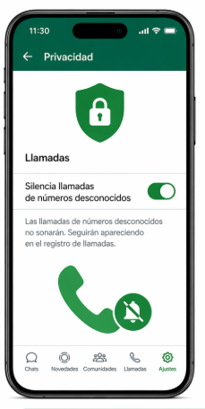 WhatsApp añadió la función Silence Unknown Callers, diseñada para dar más privacidad y control sobre las llamadas entrantes. La función ayuda a filtrar automáticamente spam, estafas y llamadas de desconocidos; esas llamadas no suenan, aunque siguen apareciendo en el registro por si alguna resulta legítima.
