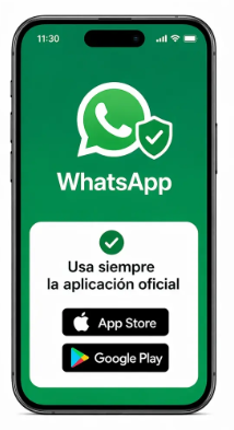 Descarga WhatsApp solo desde App Store, Google Play o la web oficial.