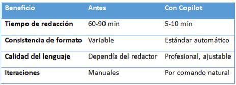 Copilot en Word está transformando la redacción de documentos de una actividad lenta y mecánica a una experiencia colaborativa entre humano e inteligencia artificial. No solo te ahorra tiempo, sino que también mejora la calidad de tus entregables y te permite concentrarte en lo importante: el contenido. |
