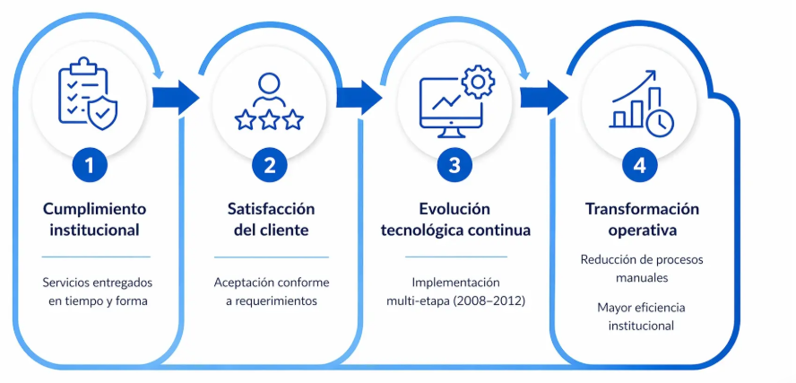 Se logró cumplimiento institucional, mayor eficiencia operativa, evolución tecnológica continua y alta satisfacción del cliente mediante soluciones escalables.