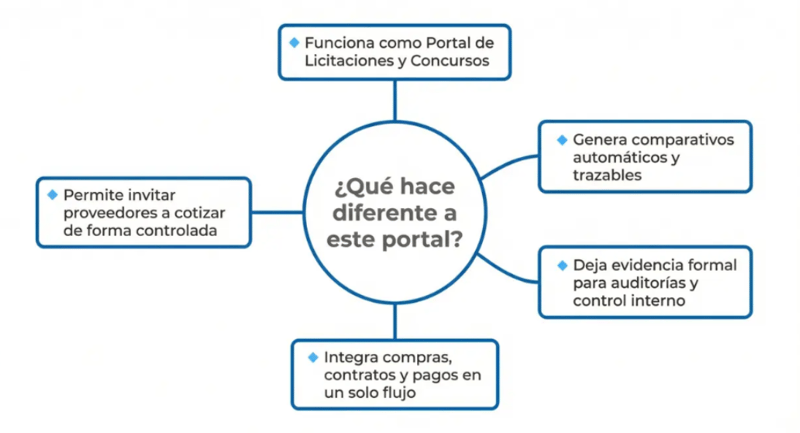 Ayudamos a las empresas y entidades a gestionar proveedores, cotizaciones y licitaciones desde un solo portal, automatizando compras, facturación y pagos, con mayor control, visibilidad, cumplimiento y menor riesgo.
