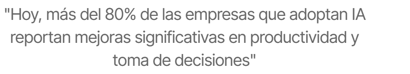 Hoy la IA es accesible para empresas de todos los tamaños. Lo importante no es el tamaño, sino identificar correctamente dónde aplicarla para generar impacto.