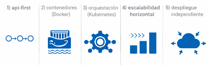 Las siguientes características describen los componentes que se consideran en este tipo de arquitecturas para asegurar desacoplamiento, despliegue controlado y capacidad de crecimiento progresivo.