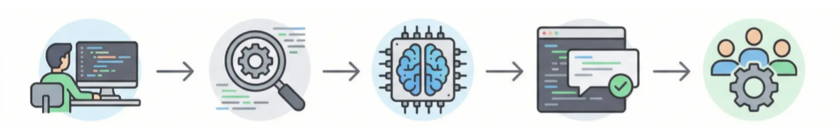 Pero las decisiones de arquitectura, revisión de código y diseño siguen siendo responsabilidad humana.